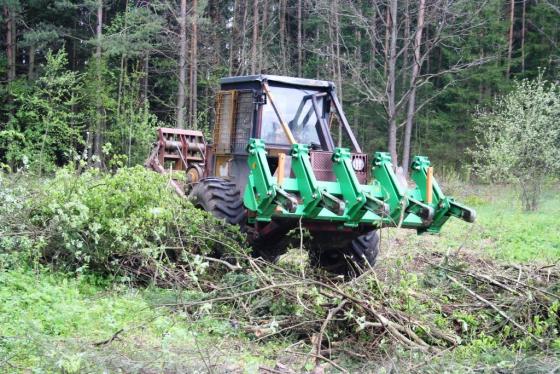 Die so aufgeschichteten Äste werden anschließend abtransportiert oder vor Ort zerkleinert, so dass die geräumte Fläche weiteren Maßnahmen zur schnellen Einleitung ihrer Verjüngung unterzogen werden kann. Dank der Konstruktion der Räumrechen und der speziell konzipierten Bewegungskinematik der rechenden Elemente (Klauen) können Äste ohne Aufreißen der Bodenvegetation aufgeschichtet werden, wobei Hindernisse bis 230 mm Höhe, wie Baumstümpfe, problemlos überfahrbar sind. Das Gerät kann auf einem Rückezug montiert werden. Vorteile: schnelle Schlagräumung und Bodenbearbeitung, bessere Auslastung der Rückezüge. Die Räumrechen sind standardmäßig für die Montage auf LKT-Skiddern vorbereitet. Nach individueller Abstimmung können sie auch anderen Skiddern angepasst werden.