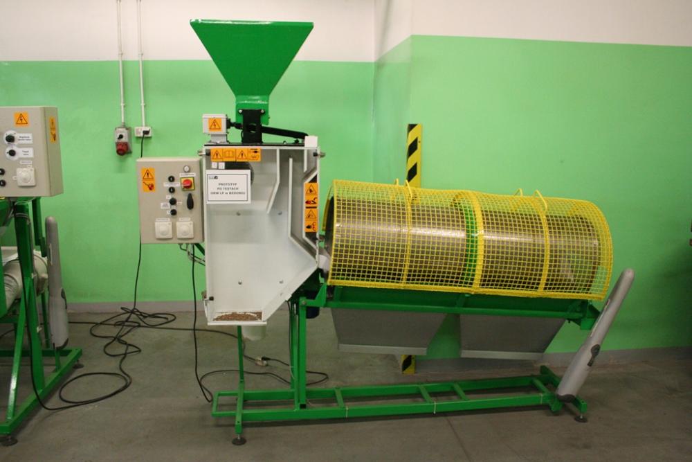 Proces technologiczny SITOWEGO SEPARATORA NASION SNS polega na czyszczeniu nasion z lekkich zanieczyszczeń w strumieniu powietrza, natomiast pozostała masa dostaje się na sita.