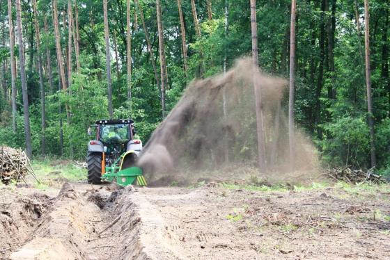 The ridger has been designed to form ridges in preparation for planting on temporary wetlands. The rotating head grinds and throws the excavated soil aside of a trapezium shaped trench simultaneously forming a ridge. Trenches prepared by the ridger improve water drainage and planting takes place on the top of the formed ridges.