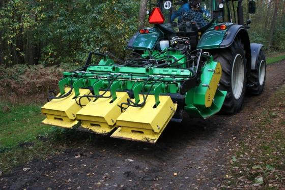 The machine is mounted on and powered from tractors supplying a minimum power output of 160 kW (a 4 wheel-drive tractor is recommended). Power requirement depends strictly on the applied working depth of the rotor.