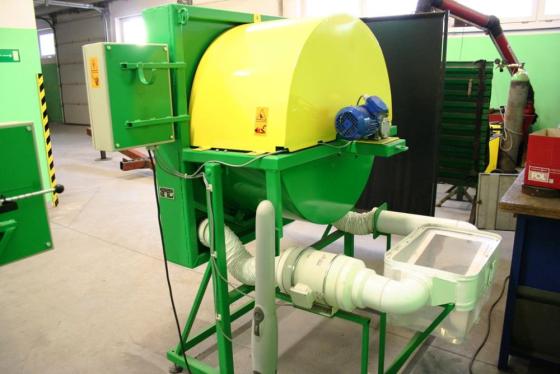 Mit der vielseitig einsetzbaren Trommel-Entflügelungsmaschine für Baumschulen werden Kiefern-, Fichten- und Lärchensamen im Trocken- und Nassverfahren entflügelt. Bei dem Trockenverfahren brechen die Flügel durch Reibwirkung zwischen den Samen ab und gelangen in die Schlitze der Trommellochung.