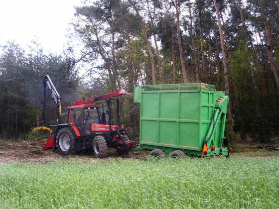 Die so zu einem Ganzen zusammengefügten Geräte und Maschinen bieten die Möglichkeit, Holzhackgut schnell und komfortabel zu gewinnen. Der Anhänger verfügt über eigene Hydraulik, so dass Holzhackschnitzel direkt auf einen anderen Anhänger mit einer Höhe bis 3 m verladen werden können. Durch das Einachs-Fahrwerk des Anhängers werden die Traktionseigenschaften des ganzen Satzes Schlepper – Anhänger wesentlich verbessert. Landwirtschaftliche Niederdruckreifen sorgen in Verbindung mit einer "Tandem"-Anordnung der Räder für richtige und gute Fahrbedingungen im Gelände und auf Forstwegen.