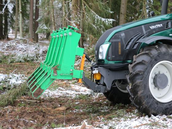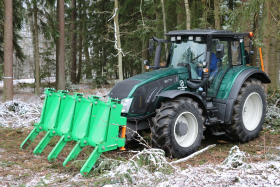 Die so aufgeschichteten Äste werden anschließend abtransportiert oder vor Ort zerkleinert, so dass die geräumte Fläche weiteren Maßnahmen zur schnellen Einleitung ihrer Verjüngung unterzogen werden kann. Dank der Konstruktion der Räumrechen und der speziell konzipierten Bewegungskinematik der rechenden Elemente (Klauen) können Äste ohne Aufreißen der Bodenvegetation aufgeschichtet werden, wobei Hindernisse bis 230 mm Höhe, wie Baumstümpfe, problemlos überfahrbar sind. Das Gerät kann auf einem Rückezug montiert werden. Vorteile: schnelle Schlagräumung und Bodenbearbeitung, bessere Auslastung der Rückezüge. Die Räumrechen sind standardmäßig für die Montage auf LKT-Skiddern vorbereitet. Nach individueller Abstimmung können sie auch anderen Skiddern angepasst werden.