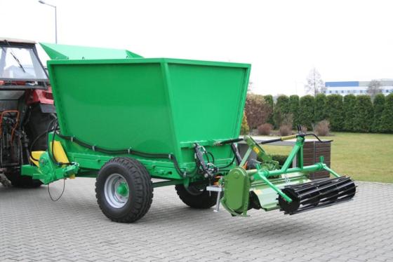Nowością w tym rozwiązaniu jest własny układ hydrauliczny, który pozwala na precyzyjniejszą regulację prędkości podawania substratu, a jednocześnie agregatowanie z ciągnikiem jedynie do zamontowania napędu z WOM (brak konieczności połączenia hydrauliki ciągnika z urządzeniem, nie występuje niebezpieczeństwo zabrudzenia oleju hydraulicznego).