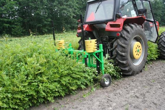 The device is designed for mechanization of tree nursery works. The root pruning machine / plant lifter is mounted on a three-point hitch in tractors working in arboretums. Its simple but solid construction guarantees reliability.