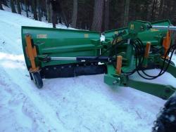ZPL snow plow is a blade plow hinged on a three-point hitch in tractors. It has been designed for maintenance of forest roads of a width up to 2,3 m during winter season.